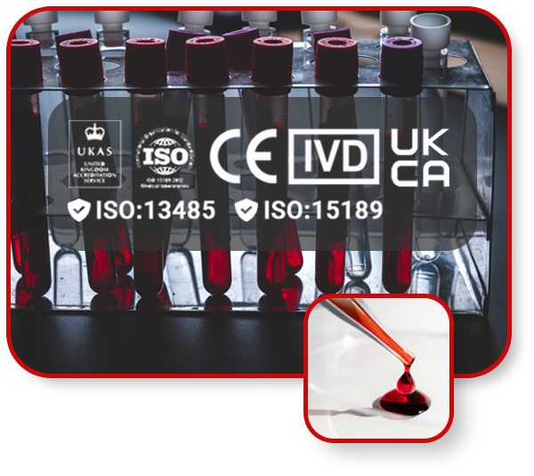 Ihre Blutuntersuchung wird in Laboren mit den höchsten Standards durchgeführt, die auf Genauigkeit validiert sind. Jede Blutuntersuchung wird mit der Gewissheit durchgeführt, dass sie korrekt behandelt wurde und die UKAS 15189 Akkreditierung erreicht hat.
